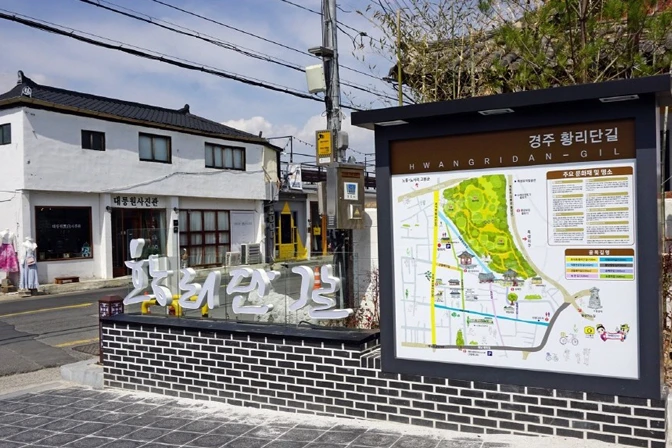 황리단길은 경주에서 가장 젊은 길로, 황남동과 이태원의 경리단길을 합쳐진 단어로 ‘황남동의 경리단길’이라는 뜻을 가지고 있다. 내남사거리에서 시작해 황남초등학교 사거리까지의 도로를 기준으로 양쪽의 황남동, 사정동 일대의 지역을 일컫는다. 1960~70년대의 낡은 건물 등이 그대로 보존되어 있어 옛 정취를 고스란히 느낄 수 있는 거리이다. (자료출처 : 대한민국 구석구석 - korean.visitkorea.or.kr)