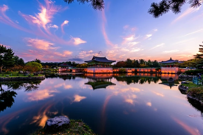 경주 동궁과 월지는 신라 왕궁의 별궁 터이다. 다른 부속건물들과 함께 왕자가 거처하는 동궁으로 사용되면서, 나라의 경사가 있을 때나 귀한 손님을 맞을 때 이곳에서 연회를 베푼 장소이다. (자료출처 : 대한민국 구석구석 - korean.visitkorea.or.kr)